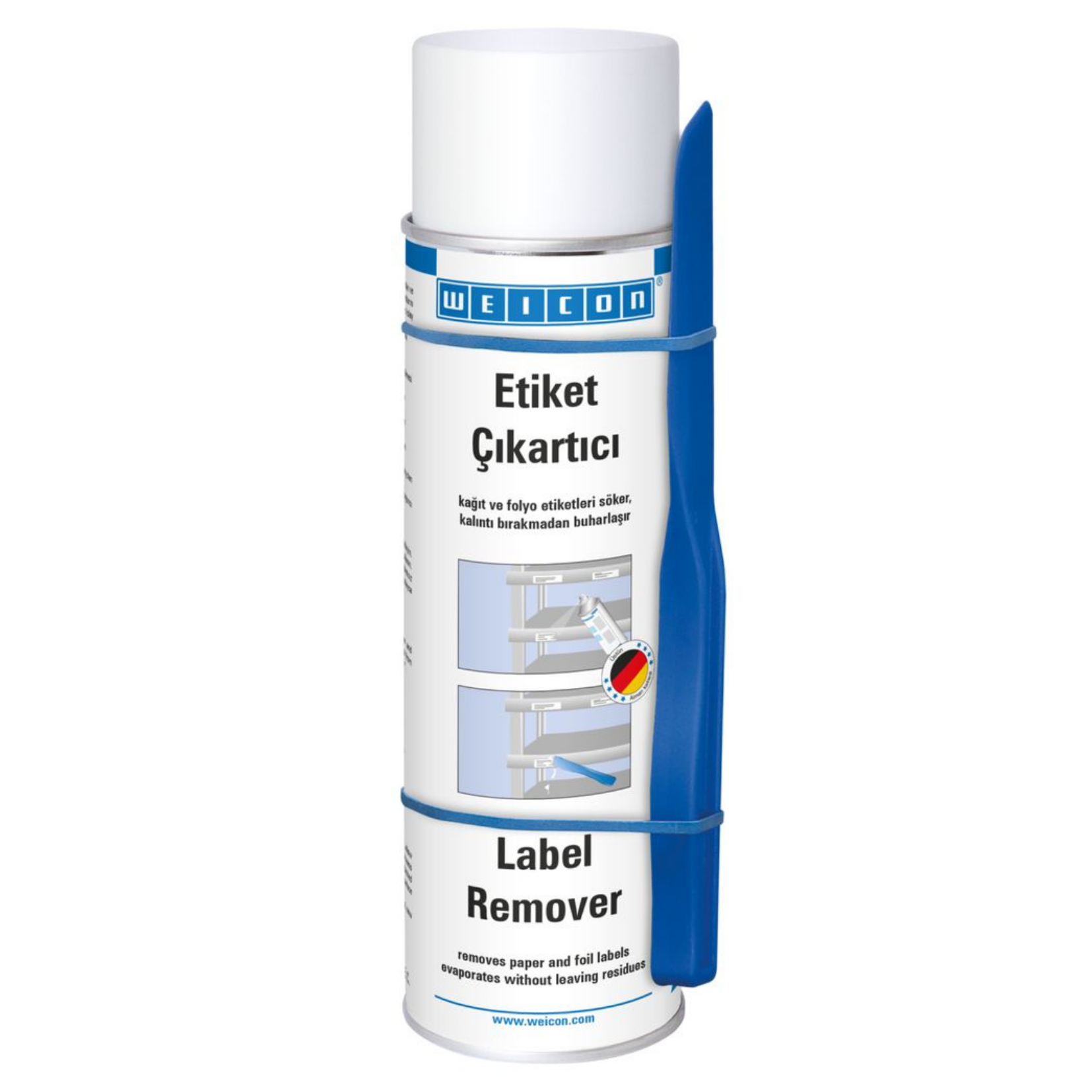 WEICON Etiket Çıkartıcı; akrilat ve kauçuk bazlı basınca duyarlı yapıştırıcıların neden olduğu etiket ve yapışkan kalıntılarını hızlı ve etkili şekilde sökmek için geliştirilmiş sprey üründür. Cam, metal, ahşap, folyo ve plastik gibi birçok yüzeyde güvenle kullanılabilir.